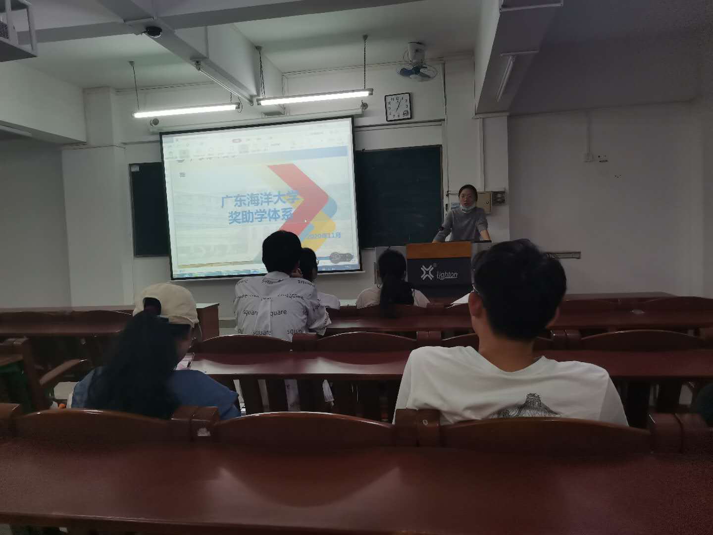 叶老师根据学校资助政策,分别就新生“绿色通道”、广东省新生资助、国家助学贷款、国家奖助学金、优秀学生奖学金和社会奖助学金、勤工助学、临时困难补助、应征入伍国家资助、“三支一扶”国家助学贷款代偿、南粤扶残助学工程、少数民族资助、广东省建档立卡学生免学费和生活补助等十二个模块进行详细讲解,帮助学生更加全面、深入了解学校的助学政策。