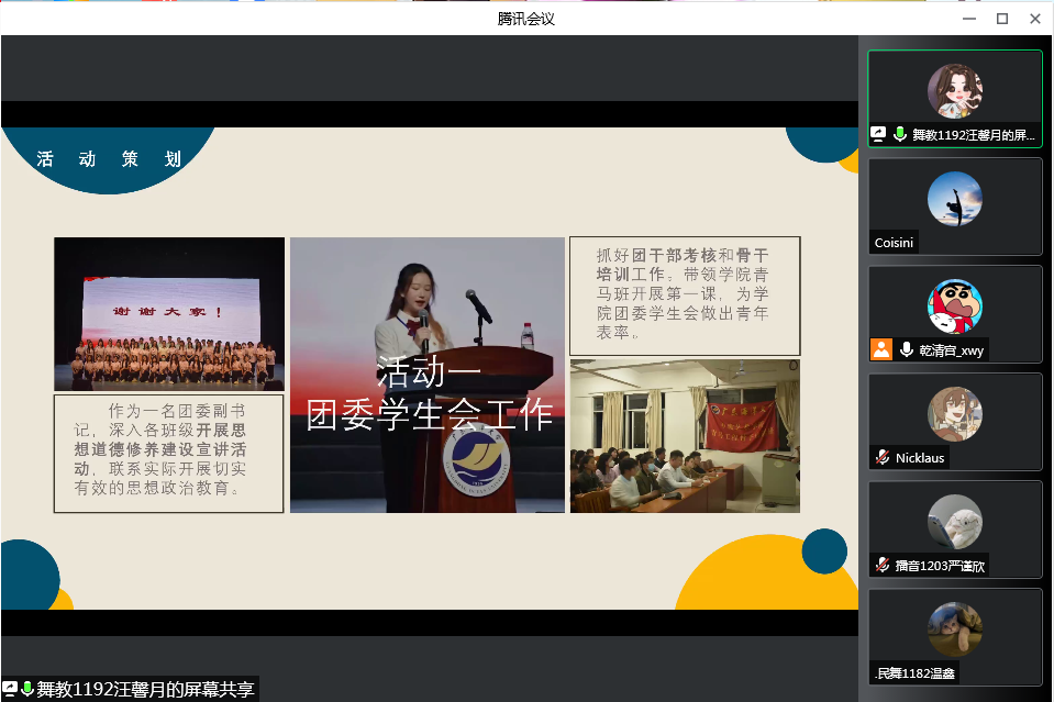 5月18日上午,中歌艺术学院国家资助政策宣讲、国家助学贷款诚信感恩教育暨还款指导会议在腾讯线上举行。会议由中歌艺术学院学工办谢维杨老师主持,部分国家奖学金、国家励志奖学金、国家助学金和优秀学生奖学金获得者以及国家助学贷款毕业生150余人参加。