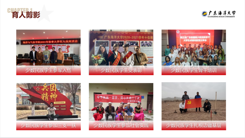 《家校社同频共振,共育民族团结石榴籽》作品依托少数民族学生“家-校-社”协同育人培养工程项目,该培养工程是广东省深化新时代教育评价改革试点项目成果。为了贯彻落实习近平总书记关于民族团结进步重要论述,解决少数民族大学生教育管理服务的现实困境,bevictor伟德官网少数民族学生工作团队以加强党建促学生全面发展,以“家-校”联动和“校-社”合作为突破点,打造“家-校-社”协同联动的少数民族学生培养工程,发挥了“1+1+1>3”的育人作用,提升民族团结的石榴籽效应。该培养工程具有三大创新点:一是健全校内协同新模式,二是构建家校协同新平台,三是优化校社协同新路径。该培养工程取得了三大成效:对维护校园安全和社会稳定起到了“压舱石”的作用、对提高少数民族学生培养质量起到了“催化剂”的作用、对输送社会人才及助力边疆建设发展起到了“蓄水池”的作用。