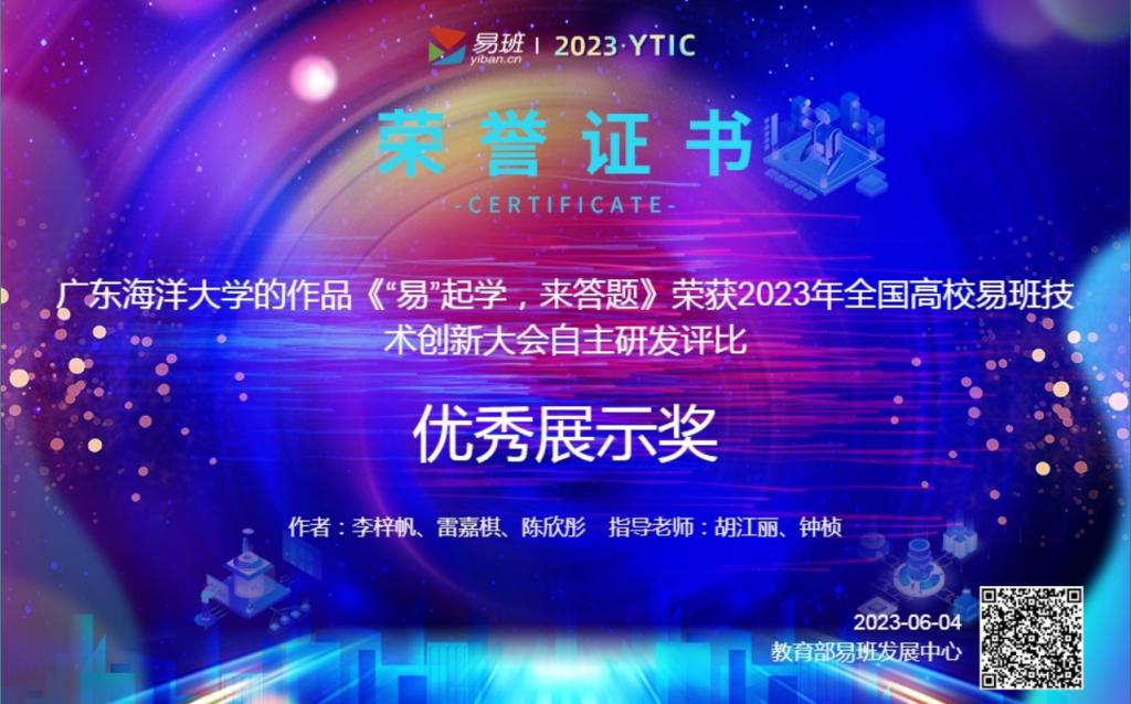 6月1日至4日,2023年全国高校易班技术创新大会在深圳举办,我校参赛作品《跟党走 村振兴》、《“易”起学,来答题》2个项目经过校内选拔、专家评审、现场答辩,分别荣获创新创意类、自主研发类优秀展示奖。