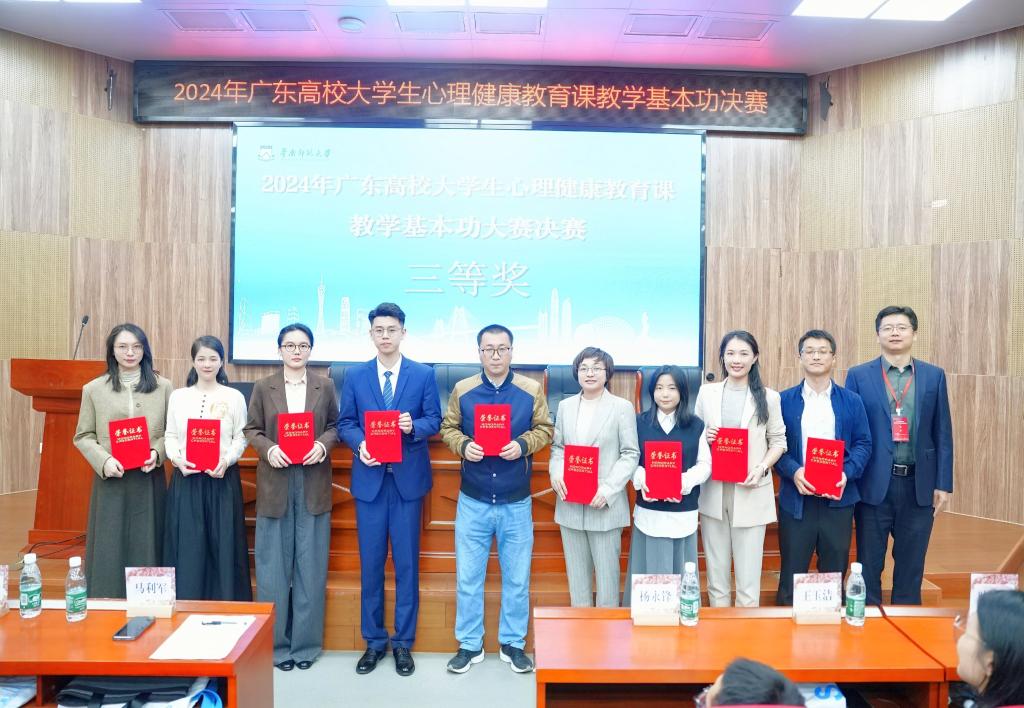 12月7日,2024年广东省高校大学生心理健康教育课教学基本功大赛决赛在华南师范大学举行,我校心理健康教育与咨询中心专任教师张绮琳、文学与新闻传播学院辅导员崔文婷老师均荣获三等奖。