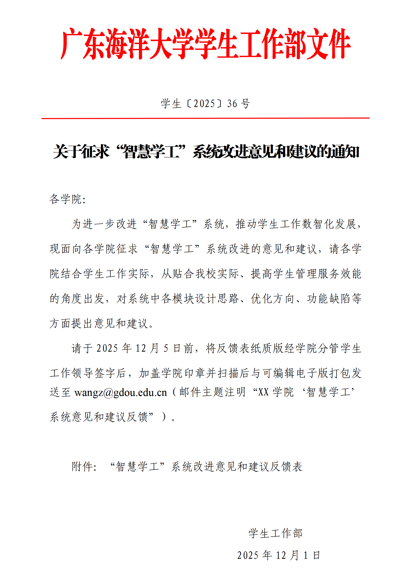 上一条:关于开展2025年秋季学期学生宿舍安全教育检查的通知 下一条:关于组织2025级本科生入学应知应会测试的通知