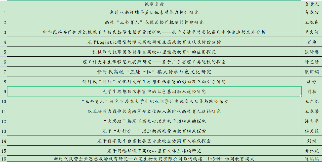 根据《关于组织申报高校思想政治工作队伍培训研修中心(华南师范大学)2021年度开放课题的通知》,共有16份课题提交了申报申请(这次申报不限名额)。